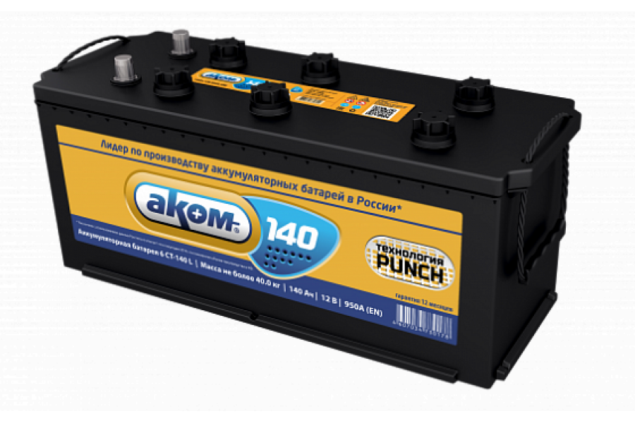 - Модель: Аккумулятор AKOM 6CT-140 Евро 140 A/h 950А R+