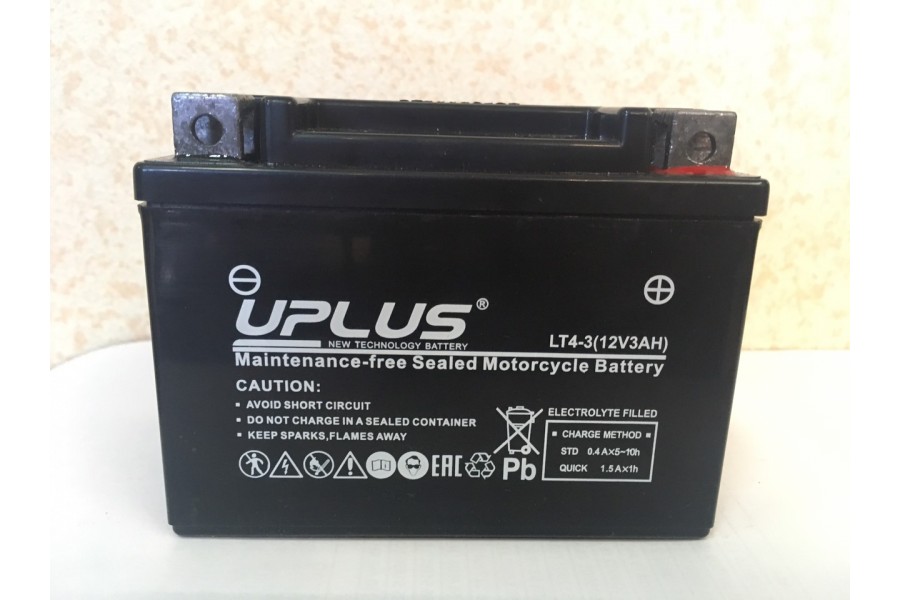 - Модель: Аккумулятор UPLUS Super Star LT4-3 (YTX4L-BS 503014) (3 Ah R+)