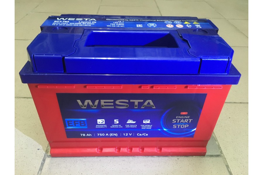 - Модель: Аккумулятор Westa RED EFB 78 A/h 750A